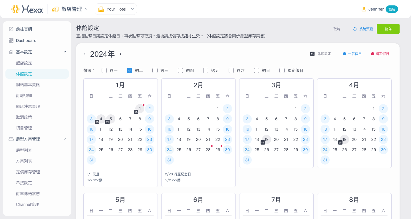 Hexa 智慧官網為您打造直覺、靈活的客製化訂房體驗。透過視覺化的房型或方案展示,您可以輕鬆選擇最合適的住宿方案,並享受免跳轉的無縫訂房體驗。無論是單間房型或組合優惠,讓顧客的預訂過程更簡單順暢。