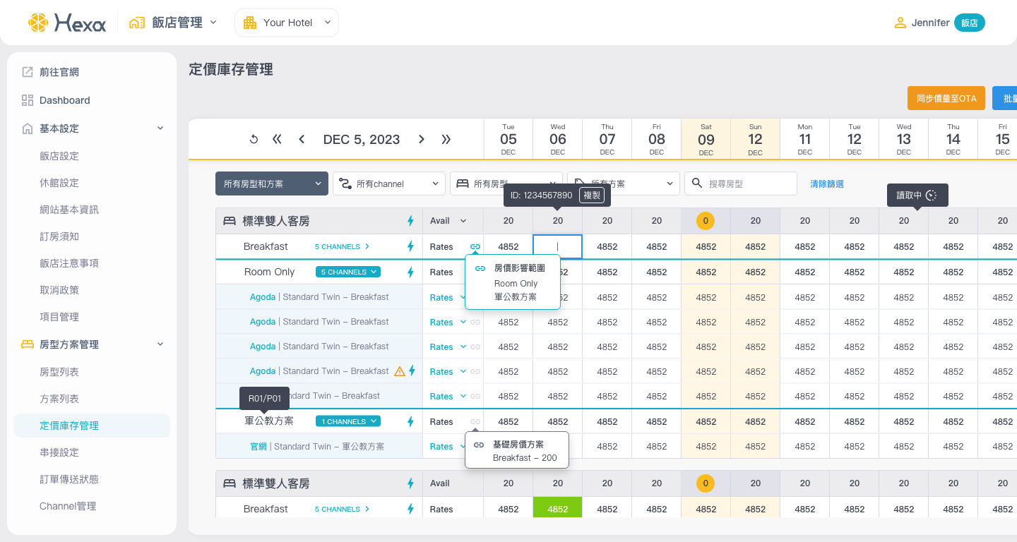 Hexa 的 Channel Manager 系統是您旅宿銷售的最強後盾!無論是 OTA 平台、自家官網,還是合作夥伴的渠道,Hexa 能實時同步房量、房價及訂單資訊,避免超賣與價格錯誤,確保您的房源管理始終如一。智能化的操作介面,讓您隨時掌控多通路銷售狀況,省時省力,輕鬆實現高效管理。